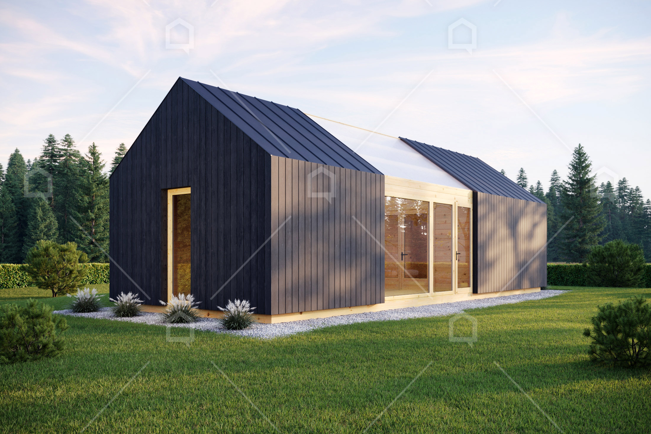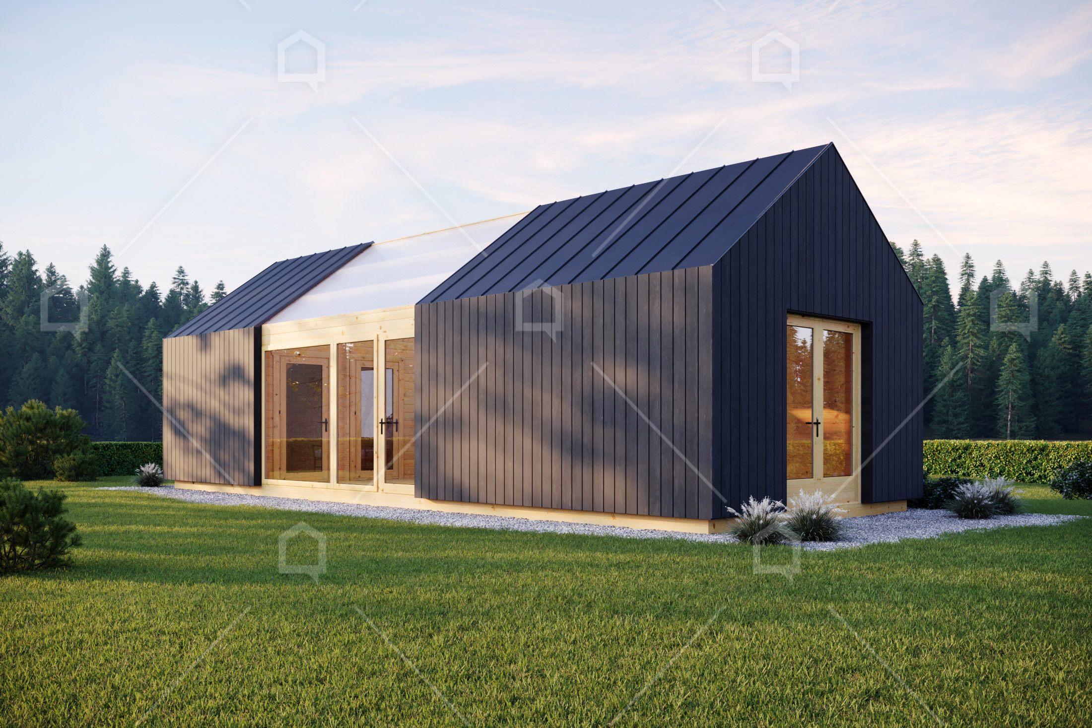 „Barcelona“ je moderní designový dřevěný letní dům se sedlovou střechou. Stavba má obytnou plochu 27 m², v rámci které jsou naplánovány a odděleny dva prostory, jeden pro odpočinek a druhý pro volný čas, oddělené hliníkovou konstrukcí uprostřed.