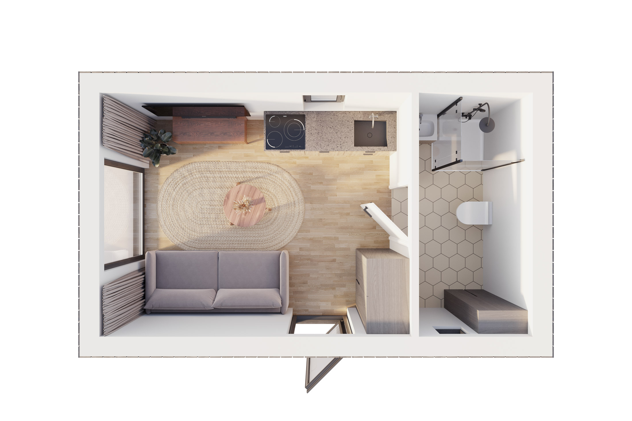 Projekt Amara byl vytvořen s ohledem na komfort a harmonii s přírodou. Nabízí útulný odpočinek a jednoduchý život na malé ploše. S 16,8 m² užitné plochy dokáže domek Amara skvěle vyvážit funkčnost prostoru a estetiku a zajistit veškeré potřebné pohodlí pro relaxaci v přírodě. Jeho minimalistický a moderní design přináší příjemný pocit jednoduchosti a klidu.