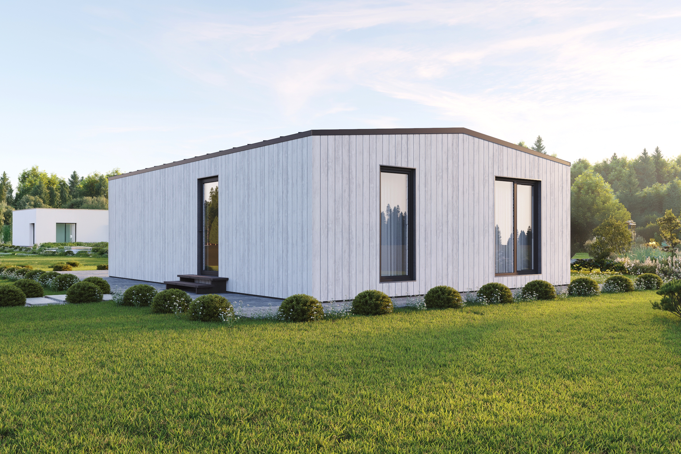 Dům se skládá z několika samostatných modulů, které vyrábíme v naší továrně a následně je sestavíme do jednoho celku. Modulární dům je na pozemek klienta dodán s hotovou vnější i vnitřní povrchovou úpravou, kuchyní a sanitární zónou.